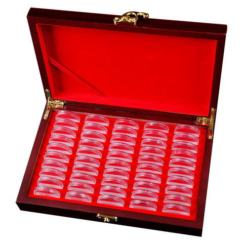 Hot Sale Holz Geschenk Münz boxen verstellbar 30mm 27mm 25mm Münz kapsel Display 50 Kapseln Holz münzen Display Aufbewahrung sbox